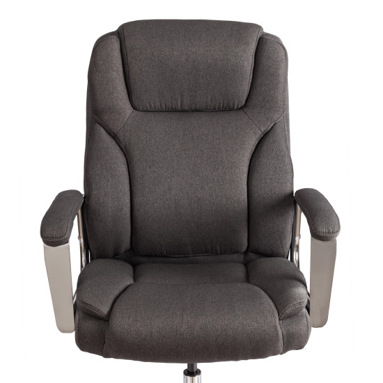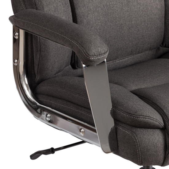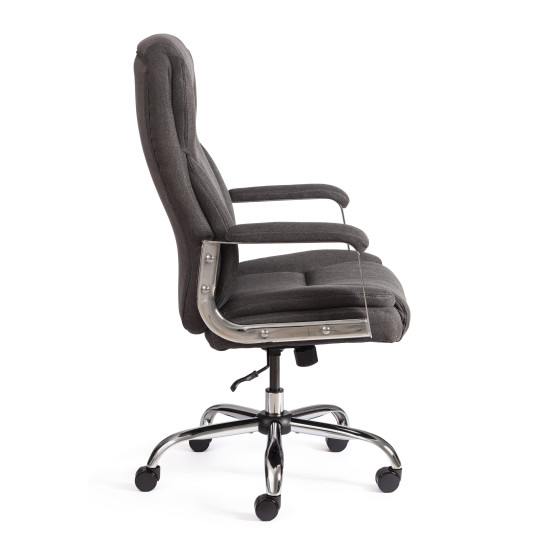 Кресло Appolon – стильное кресло для руководителя. Кресла предназначено для домашнего кабинета или стильного кабинет в офисе, с повышенной нагрузкой до 180 кг, с комфортной посадкой за счет использования пружинных блоков в сиденье. Рассмотрим его ключевые характеристики: 1. Основная конструкция: Основание кресла выполнено из 5-лучевой стальной крестовины с хромированным покрытием, крестовина разборная. Диаметр крестовины составляет 700 мм, что обеспечивает устойчивость и надёжность кресла. Крестовина прошла тест BIFMA, то есть выдерживает на испытаниях статическую нагрузку 1136 кг. 2. Ролики: Кресло оснащено полиуретановыми (прорезиненными) роликами увеличенного размера (диаметр 60 мм), которые подходят для использования на паркетных и ламинированных полах. Шток роликов имеет диаметр 11 мм и соответствует тесту BIFMA (не менее 100 000 циклов при испытаниях). 3. Газовый лифт: Газовый лифт 4 класса (наивысший) позволяет регулировать высоту кресла на 80 мм, что обеспечивает комфортную настройку под большой диапазон ростов пользователей. 4. Механизм качания: усиленный механизм с толщиной стали 3 мм (+20% стандартной толщины стали обычного качественного механизма). Он позволяет изменять высоту сидения и угол наклона до 15 градусов с возможностью фиксации в одном рабочем положении. Кроме того, предусмотрена регулировка жесткости качания с помощью винта под передней частью сиденья. 5. Подлокотники: Фиксированные стальные подлокотники с хромированным покрытием и мягкими накладками обеспечивают дополнительный комфорт. В местах сварки использована покраска под серебро. 6. Наполнение и каркас: Сиденье и спинка выполнены из новой (первичной) фанеры толщиной 15 мм, класса эмиссии Е1, с дополнительным пружинным блоком для удобства. Поролон плотностью 30 кг/м³ обеспечивает долговечную эксплуатацию. 7. Обивка: Обивка выполнена из ткани рогожка с износостойкостью не менее 20,000 циклов по тесту Мартинедейла, что свидетельствует о долговечности материала. 8. Вес: Вес кресла составляет 21,8 кг (нетто) и 24,8 кг (брутто). Обычное кресло как правило весит 15 кг, в данном случае увеличенный вес кресла говорит о повышенной материалоемкости и подтверждает способность кресла выдерживать значительные нагрузки. 9. Подголовник: Интегрированный в спинку подголовник нерегулируемого типа обеспечивает дополнительную поддержку спины при использовании. 10. Нагрузка: Кресло предназначено для пользователей весом до 180 кг, конструктив кресла и качество используемых материалов делает его подходящим для большинства пользователей. Данные характеристики делают кресло Appolon отличным выбором для пользователей, ищущих качественное кресло с повышенной нагрузкой для длительного офисного или домашнего использования, обеспечивая как комфорт, так и стиль.