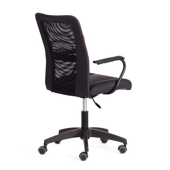 Оригинальное компьютерное кресло STAFF - идеальное решение для комфортной работы дома или в офисе. Каркас сиденья надежен, крепок, выполнен из многослойной фанеры толщиной не менее 10 мм.Для комфорта и долговременной эксплуатации в наполнении сиденья кресла используется ППУ плотностью не менее 30 кг/м3. Модель обита искусственной кожей ПВХ нового поколения, общая толщина рабочего слоя с подкладкой -1,2 мм. Это позволяет сохранить внешний вид обивки гораздо дольше, чем у многочисленных дешевых аналогов, где используется искусственная кожа толщиной 0.6-0.8 мм., выдерживает 50000 циклов на истирание по Мартиндейлу. Однослойная сетчатая обивка плотностью 280 г/м2 обеспечит вентиляцию и добавит комфорта в жаркое время года. Прочный каркас спинки с усилением изготовлен из металлической трубы диаметром 19 мм и стенкой толщиной 1,2 мм. Удобные подлокотники с пластиковой накладкой снизят напряжение в спине, помогут расслабиться при длительном времяпрепровождении за компьютером. Кресло регулируется по высоте. Механизм усилен скобой из стали толщиной 2,5 мм и способен выдержать нагрузку до 100 кг. Газлифт кресла от надежного и проверенного поставщика соответствует 3 классу стандарта DIN и имеет ход около 100 мм. Устойчивое основание модели выполнено в виде 5-лучевой полиамидной (по своей плотности материал близок к стали) крестовины. Ролики диаметром 50 мм, изготовленные из прорезиненного полиамида, бесшумны и не повреждают напольное покрытие. Благодаря своей функциональности и привлекательности компьютерное кресло STAFF черного цвета станет незаменимым предметом интерьера, прекрасно впишется в рабочий кабинет офиса или дома, удивит вас своей долговечностью, удобством и отличными эксплуатационными качествами. Модель поставляется в разобранном виде. Необходима простая сборка по прилагаемой инструкции.