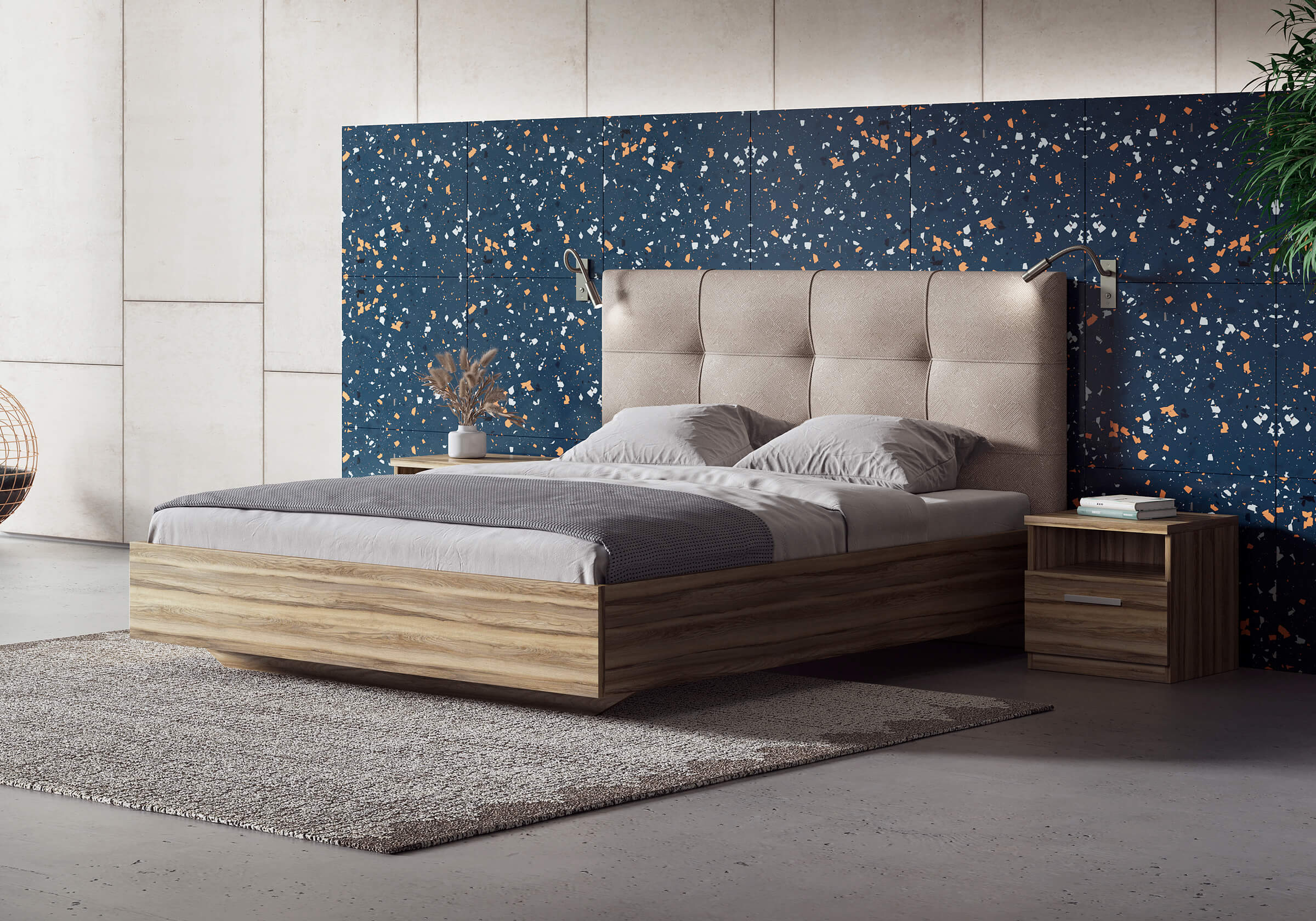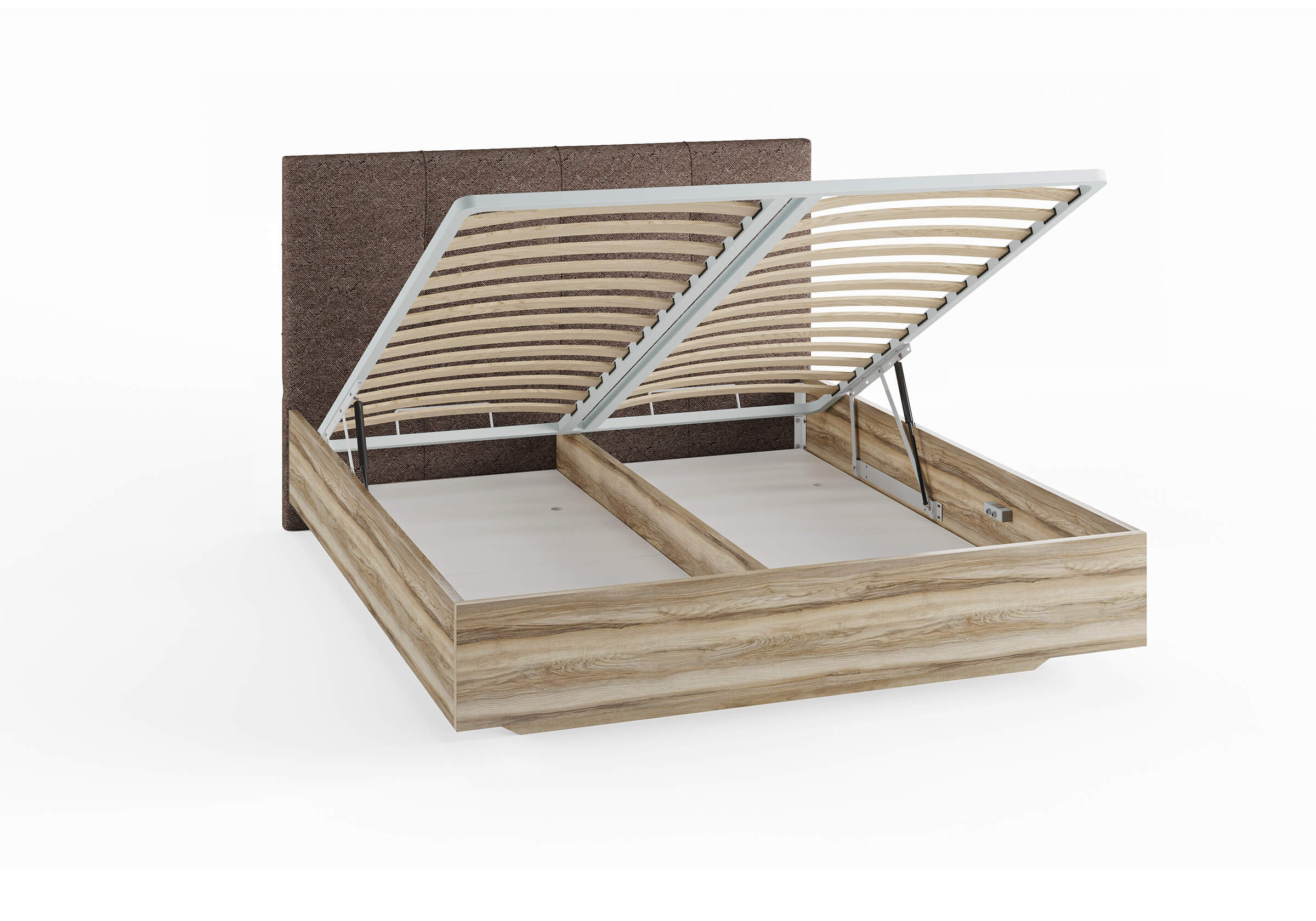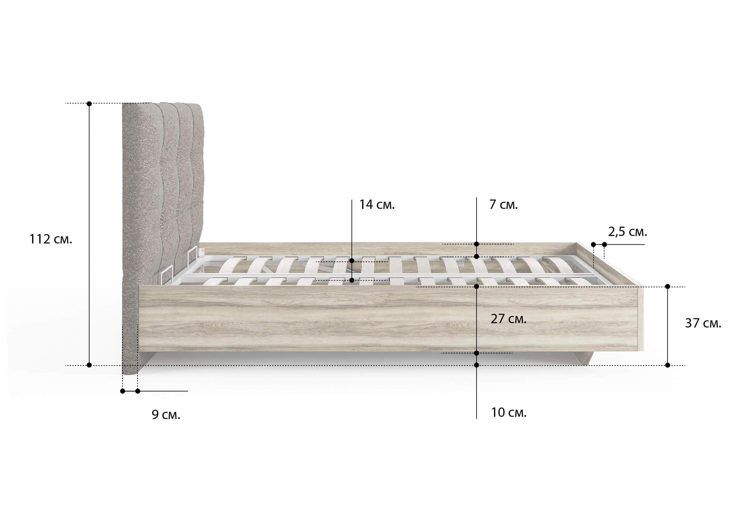 Царги из ЛДСП увеличенной толщины придадут строгость и надежность. Благодаря сочетанию усиленных металлических уголков, ребер жесткости и эксцентриковой стяжке конструктив кровати получается жёстким и прочным.- Ширина —90
