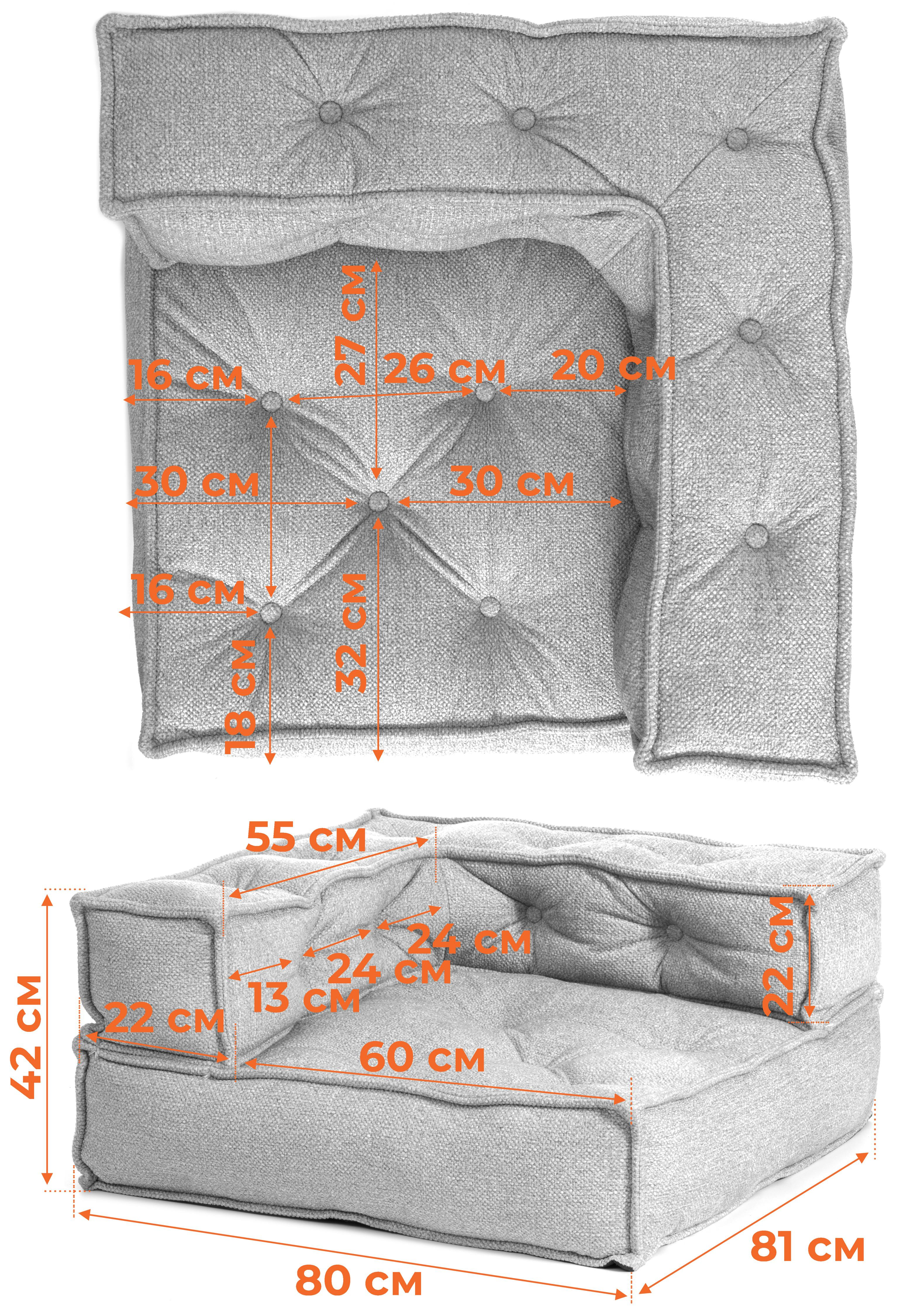 Модуль мягкий угловой Miracle велюр/букле, VT shape silver, 82x81x24 см в Санкт-Петербурге отзывы