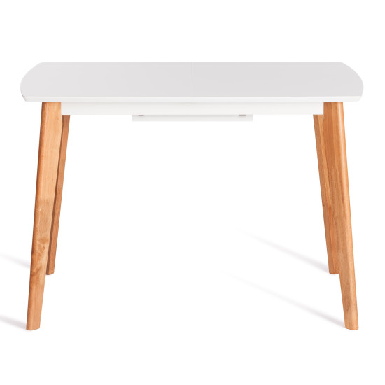 Стол обеденный раскладной Claire опоры дерево гевея, столешница МДФ, 110+30 x 75 x 75см, белый верх / ножки натуральный