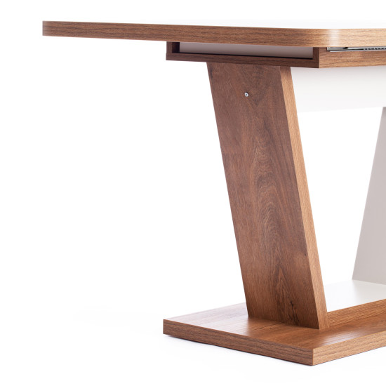 Визуально легкий стол-транформер VOX украсит собой любую домашнюю обстановку. Большая столешница, оригинальная ножка-опора и удачное сочетание цвета дуба канзас и пепельного цвета – идеальное решение для современного стильного интерьера. Размеры стола дают возможность с комфортом разместить от четырех до восьми человек. Вставка стола убирается горизонтально в подстолье. Края оклеены прочной пластиковой кромкой толщиной 2 мм. ЛДСП толщиной 18+18 мм. Механизм раздвижения - синхронного типа со стопором. Стол VOX отлично подойдёт для гостиной, для кухни или для загородного дома. Стол очень прост в сборке, инструкция по сборке прилагается.