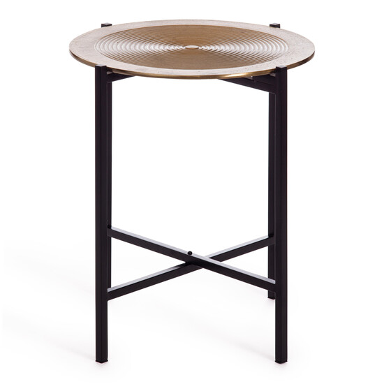 Компактные размеры и небольшой вес кофейного столика Secret De Maison BLOOM из коллекции SILVER позволят ему отлично вписаться в интерьер гостиной, спальни или столовой. Тонкие ножки и алюминиевая столешница добавят в интерьер легкости и элегантности. Черные металлические ножки в сочетании со столешницей цвета античная медь будут гармонично смотреться в любой обстановке. Изящная конструкция модели прочна, надежна и основательна. Элегантный кофейный столик Secret De Maison BLOOM может выполнять не только практическую, но и эстетическую функцию. На столик можно поставить чашку с кофе, положить книгу, пульт от телевизора или расставить на нем декоративные элементы. Модель порадует вас своей надежностью, долгим сроком службы, привлечет внимание гостей и станет главным украшением в доме. Кофейный столик будет отлично смотреться в гостинной, спальне или при входе в кафе. Столик очень прост в сборке, инструкция по сборке прилагается.