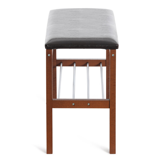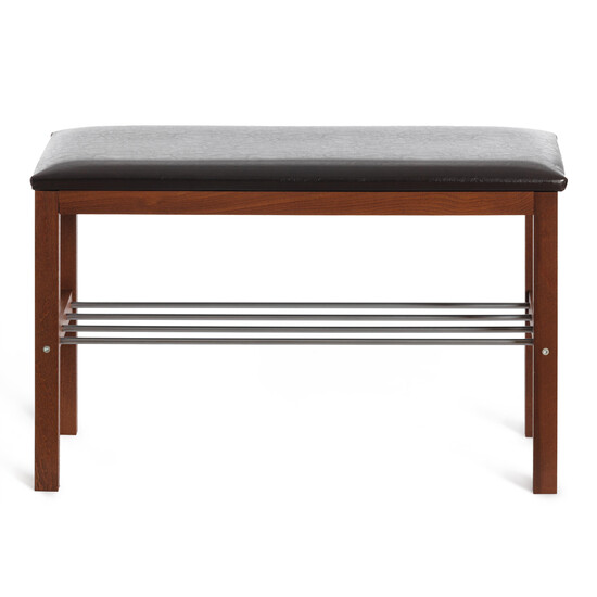Компактная банкетка BERYL из коллекции Уютный дом функциональна, удобна и практична. Банкетку можно разместить в прихожей. Мягкое сиденье выполнено из экокожи коричневого цвета, каркас выполнен из массива дерева. На полке банкетки выполненной из металла удобно расположить обувь или тапочки. Все материалы банкетки просты в уходе и долговечны. Модель очень проста в сборке, инструкция по сборке прилагается.