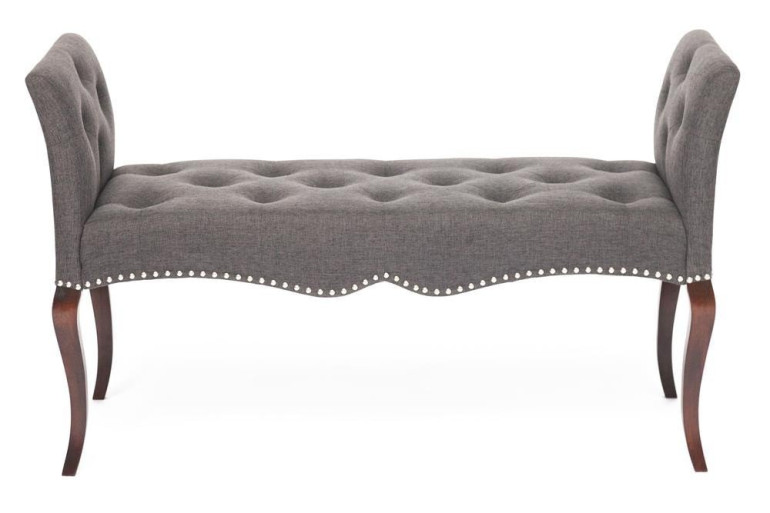 Банкетка «Милли» выполнена в традиционном французском стиле. Особенности этой модели ― элегантные формы, обивка в технике капитоне и винтажная фурнитура. Каркас изготовлен из массива березы, изящные гнутые ножки тонированы в темный цвет. Мягкая обивка в сером цвете ― из смесовой ткани с эффектом рогожки, обладает повышенной износостойкостью. Ткань отлично пропускает воздух, отталкивает пыль и способна на долгие годы сохранить свой первоначальный цвет не протираясь и не выцветая. Банкетка удачно сочетается с кроватями коллекции Tendre, а также подойдет для интерьеров гардеробной или прихожей.