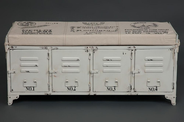 Удобство, простота и креативность прекрасно сочетаются в дизайне банкетки Secret de Maison STEEL из коллекции LOFT ART. Удобный размер и оригинальный дизайн позволяют расположить банкетку в интерьере прихожей, гостиной, спальни и других комнат, выполненных в стиле лофт. Качественная ручная работа, съемная подушка на сиденье с обивкой из хлопковой ткани и металлический каркас, покрашенный в белый цвет, с небольшими потертостями и признаками старины помогут создать ощущение стильного пространства, сделают его более привлекательным и индивидуальным. Четыре закрытых отделения с распашными дверцами – удобная система для хранения огромного количества предметов. Тканевая обивка сиденья обладает повышенной износостойкостью, не требует специального ухода и способна на долгие годы сохранить свой первоначальный вид. Модель поставляется в собранном виде.