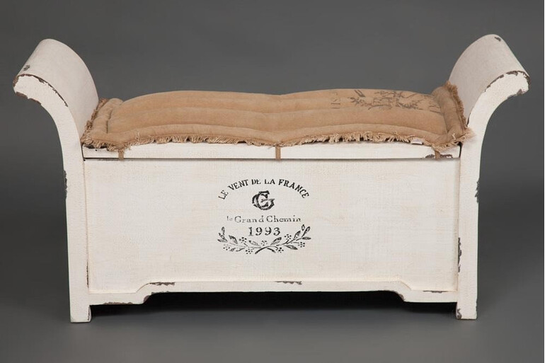 Стильная банкетка Secret De Maison VOLANCE из коллекции LOFT ART прекрасно дополнит другую мебель и позволит создать гармоничное пространство, в которое захочется вернуться еще не раз. Она функциональна, удобна, практична, способна сделать комфортным любое помещение. Банкетка VOLANCE с мягкой съемной подушкой и подлокотниками может выполнять различные функции и использоваться в прихожей, в спальне, на кухне или в гостиной. Благодаря удобной откидывающейся крышке, в ней можно хранить множество различных предметов. Небольшие потертости на ее поверхности, винтажные принты на корпусе и обивке подушки позволяют создать неповторимый облик изделия. Банкетка выполнена из массива мангового дерева, покрашена белой краской и покрыта тонким слоем матового лака. Обработанное по данной технологии дерево не требует сложного ухода и будет долгие годы радовать вас своим первоначальным видом. Тканевая обивка подушки не мнётся, не меняет форму, пропускает воздух, экологична и гипоаллергенна. Модель поставляется в собранном виде.