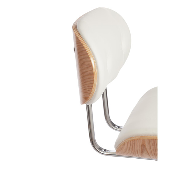 Стильный барный стул DRAKAR, выполненный из многослойной плавно изогнутой фанеры, вдохновлен творениями известных американских дизайнеров супругов Имз. Сочетание хромированной ножки, каркаса сиденья в цвете натуральное дерево и белой обивки из экокожи идеально соответствует концепции современного стильного пространства. Барный стул DRAKAR хорошо смотрится в интерьере квартиры, загородного дома, бара или кафе. Удобная форма спинки и сиденья, подставка для ног и механизм регулировки высоты обеспечивают комфортную посадку на продолжительное время. Ножка из металла и круглое основание делают стул устойчивым и надежным. Обивка из экокожи не мнётся, не меняет форму, проста в уходе. Металлический каркас отличается прочностью, устойчивостью к износу и долговечностью. Стул не требует специального ухода и будет долгое время радовать вас своим первоначальным видом. Стул хорошо подойдет для гостиной, для кухни, для бара, для ресторана или для кафе. Стул очень прост в сборке, инструкция по сборке прилагается.