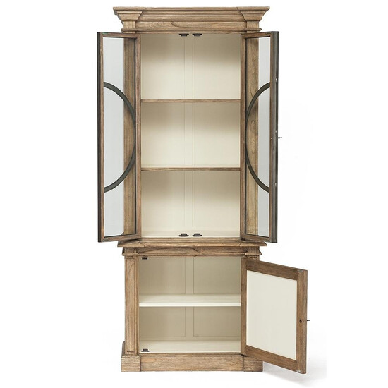 Элегантный дизайн, симметричные формы и идеальные пропорции библиотеки Secret De Maison GIRAUDOUX из французской коллекции VERSAILLES позволят ей вписаться практически в любой интерьер. Винтажная фурнитура с дизайнерским литьем, элегантный резной карниз и металлическая рама в цвете состаренный цинк подчеркивают красоту и благородство библиотеки. Два отделения с полками – прекрасная система для хранения книг, коллекционных предметов, красивой посуды и прочих мелочей. Застекленные дверцы не только удачно подчеркнут уникальность вашей домашней коллекции, но и надежно защитят ценные вещи от пыли и лишних прикосновений. Библиотека изготовлена из массива красного дерева, покрытие полупрозрачной краской и натуральным маслом подчеркивает природную красоту древесины. Обработанное по данной технологии дерево обладает повышенной прочностью, долговечностью и не требует специального ухода. Модель идеально сочетается с мебелью из коллекции VERSAILLES, поставляется в собранном виде.