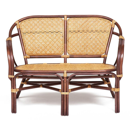 Диван PELANGI / без подушек / каркас: орех ( светлое плетение ) два тона