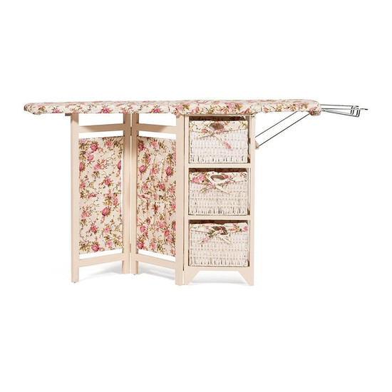 Изумительный по красоте, оригинальности и одновременно простоте гладильный комод Secret De Maison SERVES из коллекции SAINT-TROPEZ добавит ощущение легкости, единства с природой и натуральности в ваш интерьер. Комод значительно сэкономит пространство, поможет создать атмосферу уюта и комфорта в доме. В сложенном виде он не занимает много места. Три плетеные корзины из бумажного жгута со съемными чехлами и тканевые кармашки позволят хранить большое количество различных предметов. Благодаря наличию специального складного механизма, комод можно быстро и легко трансформировать в гладильную доску. Удобный размер доски, подставка для утюга и чехол из ткани обеспечивают оптимальные условия для глажки. Этот стильный, привлекающий внимание комод, можно поставить в любой комнате: гостиной, спальне, коридоре, ванной. Модель выполнена из массива павловнии, легкого и одновременно прочного материала, с хорошими водоотталкивающими свойствами, благодаря чему комод долговечен, надежен и не требует специального ухода. Изделие отлично сочетается с мебелью из коллекции SAINT-TROPEZ, поставляется в собранном виде.