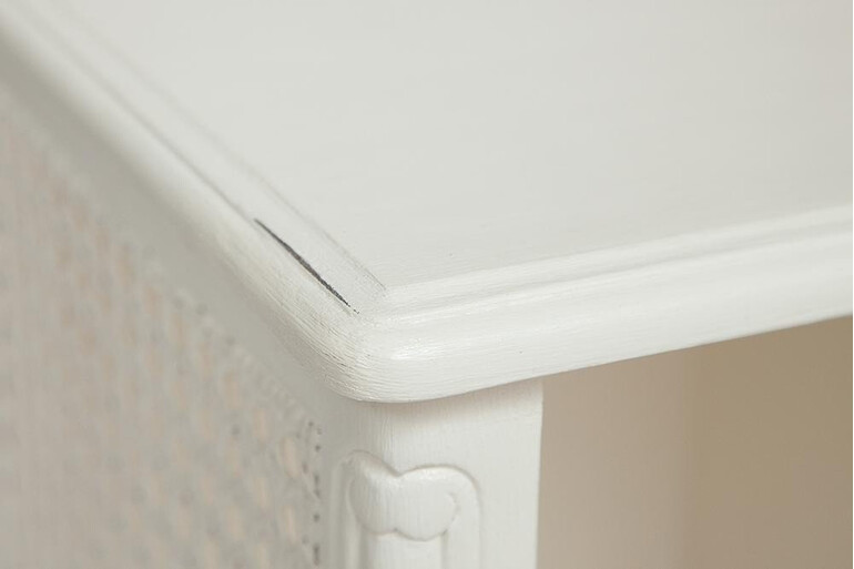 Элегантный комод Secret De Maison ANNETTE из коллекции VERSAILLES, выполненный в стиле прованс, способен стать не просто частью комнаты, но и задать тон вашему интерьеру. Плавные линии изогнутых ножек, дополненные резными деталями ручной работы, подчеркивают красоту и благородство изделия. Небольшие потертости, царапины и облупившаяся краска придают изысканность и особенный лоск. Два открытых отделения и четыре выдвижных ящика небольшого размера удобны для хранения украшений и других мелочей. Полупрозрачные стенки из натурального ротанга придают изделию визуальную легкость и непринужденность. Комод изготовлен из массива красного дерева, покрытие белой краской и натуральным маслом подчеркивает природную красоту древесины. Обработанное по данной технологии дерево обладает повышенной прочностью, долговечностью и не требует специального ухода. Модель идеально сочетается с мебелью из коллекции VERSAILLES, поставляется в собранном виде.