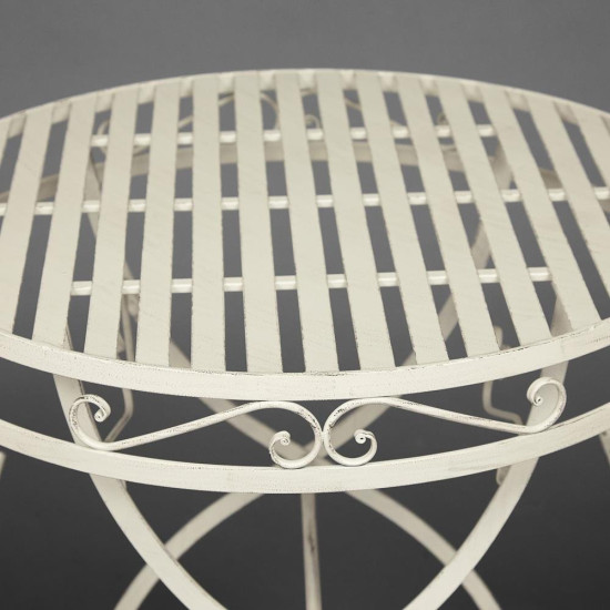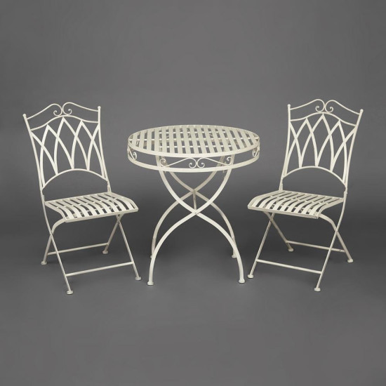Изысканный комплект кованой мебели Secret De Maison PALLADIO из коллекции BEAUJOLAIS, состоящий из стола и двух складных стульев, будет прекрасно смотреться в тенистом уголке сада, на веранде кафе, отлично подойдёт для отдыха на приусадебной лужайке. Высокое качество и красота неповторимых ажурных узоров столешницы и спинок стульев добавит благородства в ваш ландшафтный дизайн, подчеркнет вкус и статус своего владельца. Устойчивый стол и два удобных складных стула выполнены из стального сплава с напылением краски, небольшие потертости и признаки старины подчеркивают неповторимый облик изделий. Стулья легко складываются и раскладываются, не занимают много места при хранении. Эта функциональная, прочная и красивая мебель займет важное место в оформлении вашего сада. Комплект устойчив к любым погодным условиям и будет радовать вас долгие годы своим первоначальным видом. Изделия прекрасно сочетаются с мебелью из коллекции BEAUJOLAIS, поставляются в разобранном виде.