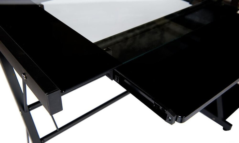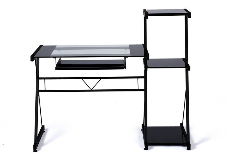 Компьютерный стол со стеллажом добавит современных нготок в интерьер. Стол выполнен в металлическом каркасе черного и серебристого цветов в сочетании со стеклянной тонированной столешницей. Стол «Technospace WRX-08» - это больше, чем просто стол – его компактность и одновременно вместительность позволяют функционально распределить пространство в доме или офисе