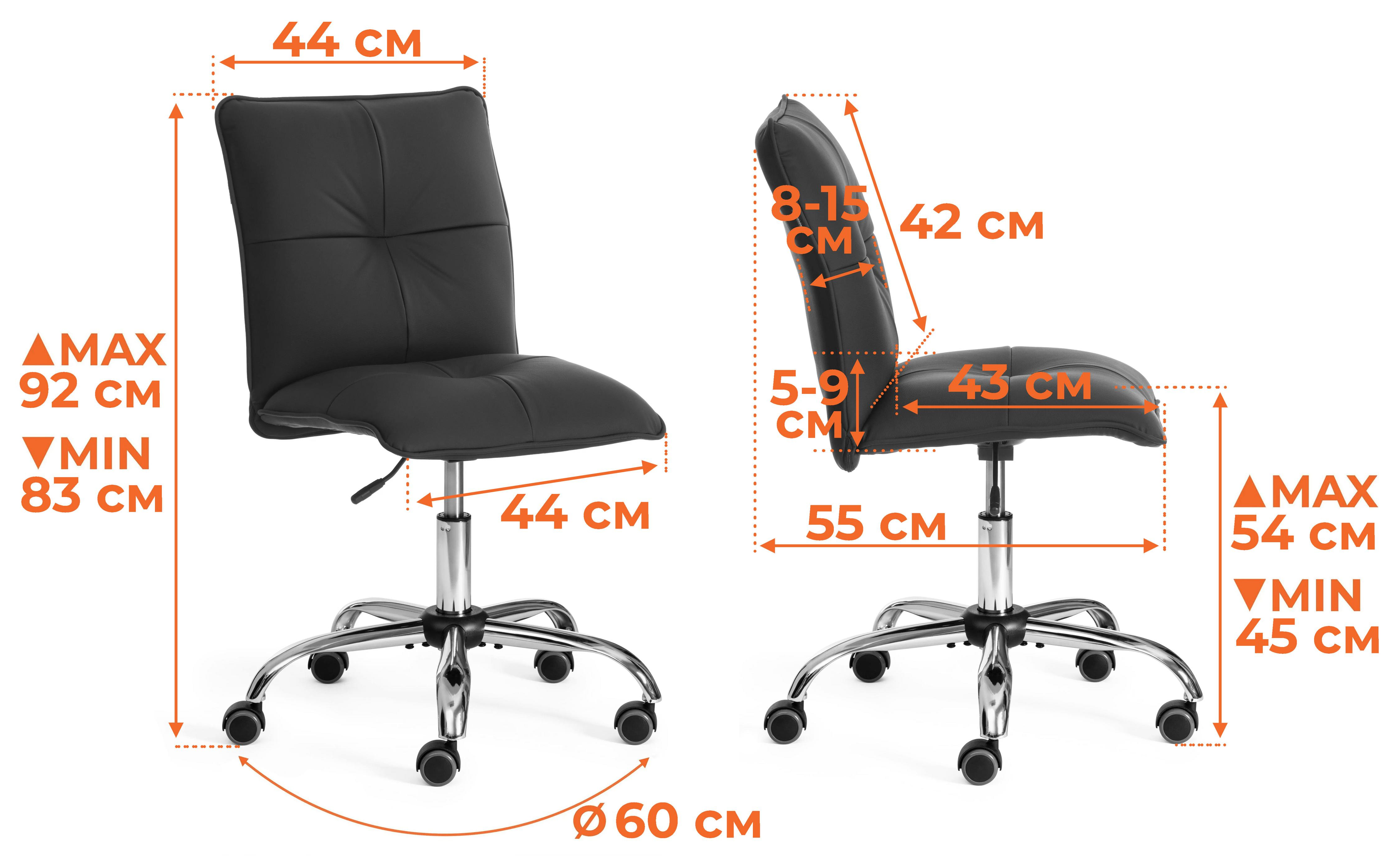 1. Основание: 5-лучевая стальная хромированная крестовина обеспечивает надежность и устойчивость кресла. Диаметр основания составляет 600 мм, что гарантирует хорошую устойчивость.