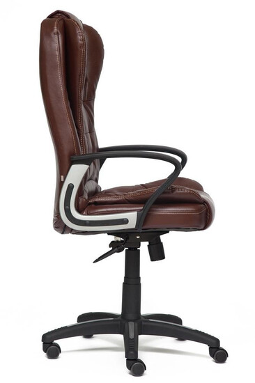 Оригинальный дизайн компьютерного кресла BARON из коллекции OFFICE создаст в вашем доме или офисе атмосферу роскоши и элегантности. Модель прекрасно впишется в интерьер и рабочего кабинета, и переговорной комнаты. Каркас изготовлен из фанеры толщиной более 10 мм. Такой материал отличается практичностью, прочностью и основательностью. Мягкое сиденье с наполнителем из пенополиуретана (до 35 кг/м2) стандартной плотности обладает высокими эксплуатационными качествами, не меняет форму на протяжении длительного времени. Кресло регулируется по высоте и наклону с фиксацией в любом положении до 15 градусов. Жесткость механизма качания настраивается при помощи специального барабана. Полиамидная крестовина с декоративными вставками серебряного цвета надежна и устойчива к усиленной эксплуатации. На ней есть специальные насечки для предотвращения соскальзывания ног. Полиуретановые ролики с прорезиненными вставками бесшумны, подходят для использования на паркетной доске или ламинате. Ролики и крестовина в креслах бренда TETCHAIR соответствуют стандарту BIFMA. Во всех креслах бренда TETCHAIR используются газлифты 3 класса, он способен выдерживать вес до 120 кг. Мягкий подголовник, фиксированные пластиковые подлокотник, эргономичная спинка кресла помогут расслабиться и снять напряжение с позвоночника. Декоративная стежка и прошивка подчеркивают безупречные силуэты модели. Офисное кресло BARON обито высокопрочной износостойкой экокожей с перфорацией коричневого, бежевого или черного цвета. Экокожа , используемая при изготовлении кресла, выдерживает до 50 000 циклов на истирание по Мартиндейлу. Ткани с прочностью более 35 000 циклов являются самыми долговечными. Мебель, в которой используются такие ткани можно использовать не только дома но и в ресторанах, салонах красоты, приемных. Максимальная нагрузка 120 кг. Модель поставляется в разобранном виде. Требуется простая сборка по прилагаемой инструкции.