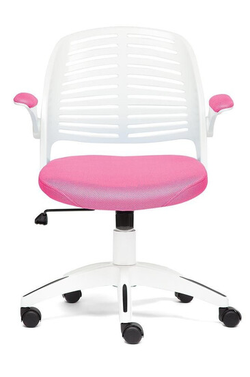 Уникальное кресло JOY – это оригинальное и яркое решение для детской комнаты. Функциональная модель будет удачно смотреться как в рабочем кабинете, так и в детской комнате. Пластиковые подлокотники с мягкими накладками откидываются наверх. Такая функция позволяет задвигать модель под любой стол. Каркас из белого пластика прекрасно сочетается с черными вставками, что делает модель уникальной и привлекательной. Прочная крестовина диаметром 640 мм изготовлена из полиамида, устойчива к жесткой эксплуатации, проста в уходе. Сиденье с мягким наполнителем из пенополиуретана стандартной плотности с сетчатой обивкой долговечно, надежно и износостойко. Удобная слегка выгнутая спинка позволяет расположиться с комфортом и снизить напряжение на позвоночник. Высота и наклон с фиксацией регулируются при помощи основательного механизма. Контрастное сочетание белого пластика с обивкой сиденья розового цвета выглядит выразительно и привлекательно. Высококачественные полиамидные ролики позволяют бесшумно перемещать кресло с места на место, подходят для использования на коврах с низким ворсом и на специальных защитных поверхностях. Кресло JOY идеально впишется в любой современный интерьер и станет его ярким акцентом. Модель поставляется в разобранном виде. Необходима несложная сборка по прилагаемой инструкции. Максимальная нагрузка кресла 120 кг.