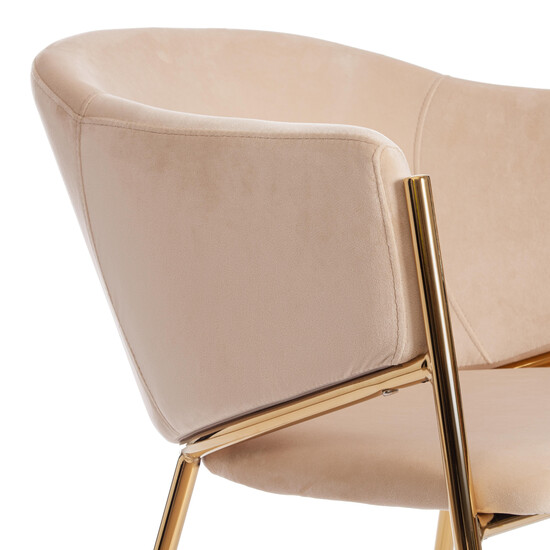 Великолепное кресло KRONOS из коллекции Modern – это удачное сочетание роскоши и элегантности. Оригинальная форма, благородный цвет обивки в сочетании с визуально легкими ножками в золотом цвете выгодно выделают кресло среди привычной мебели. Удобное сиденье, эргономичная спинка и высокие подлокотники обеспечивают комфортную посадку для продолжительного отдыха. Надежный каркас кресла изготовлен из металла. Мягкая, бархатистая и приятная на ощупь поверхность сиденья и спинки подарит максимальный комфорт и уют. Тканевая обивка из вельвета бежевого цвета не мнётся, не меняет форму, пропускает воздух, экологична и гипоаллергенна. Металлические ножки делают стул прочным и устойчивым. Он прослужит вам долгие годы, радуя своим первоначальным видом. Модель выглядит дорого, стильно, элегантно. Кресло подойдёт для гостиной, кухни, пальни, ресторана или кафе. Кресло очень простое в сборке, инструкция по сборке прилагается.