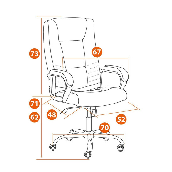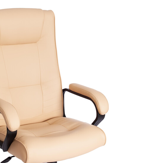 Анатомическая спинка, вместительное сиденье, презентабельный внешний вид компьютерного кресла MAXIMA Хром (22) из коллекции OFFICE - воплощение практичности, функциональности и изысканности. Модель отлично впишется в любой рабочий кабинет и офиса, и дома. Надежный каркас изготовлен из фанеры толщиной более 10 мм , придающей модели долговечность и основательность. Спинка и сиденье из пенонополиуретана (до 35 кг/м2) стандартной плотности не деформируются со временем, пропускают воздух. Офисное кресло регулируется по высоте и наклону с фиксацией в одном положении. Жесткость качания настраивается при помощи специального барабана. Хромированная крестовина устойчива, выглядит стильно и фундаментально. Фиксированные пластиковые подлокотники с мягкими накладками помогут снять нагрузку с плеч и уменьшить усталость. Высококачественные полиуретановые ролики с прорезиненными вставками позволяют бесшумно перемещать кресло с места на место, не оставляют следов на напольном покрытии, подходят для использования на паркете и ламинате. Ролики и крестовина в креслах бренда TETCHAIR соответствуют стандарту BIFMA. Во всех креслах бренда TETCHAIR используются газлифты 3 класса, он способен выдерживать вес до 120 кг. Компьютерное кресло обито высокопрочной износостойкой экокожей. Такой материал пропускает воздух, не требует сложного ухода. Экокожа, используемая при изготовлении кресла, выдерживает до 50 000 циклов на истирание по Мартиндейлу. Ткани с прочностью более 35 000 циклов являются самыми долговечными. Мебель, в которой используются такие ткани можно использовать не только дома но и в ресторанах, салонах красоты, приемных. Модель представлена в черном и бежевом цветах. Практичное и оригинальное офисное кресло MAXIMA Хром (22) обладает прекрасными эстетическими свойствами, отличными эксплуатационными качествами и долговечностью. Модель поставляется в разобранном виде. Необходима простая сборка по прилагаемой инструкции. Максимальная нагрузка 120 кг.