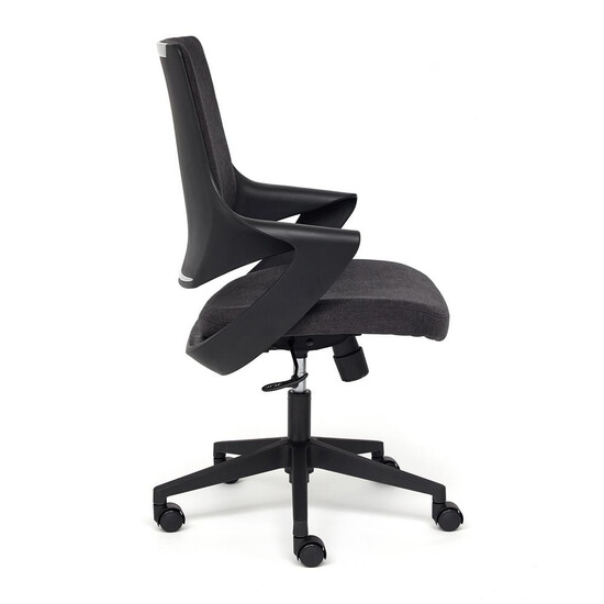Офисное кресло WAVE из коллекции OFFICE – идеальное сочетание привлекательности, уникальности и надежности. Элегантная модель будет удачно смотреться как в офисе, так и в рабочем кабинете вашего дома. Пластиковый каркас, плавно переходящий в фиксированные подлокотники, смотрится необычно и оригинально. Удобная спинка кресла обеспечивает надежную опору для позвоночника и регулируется для комфортной посадки. Сиденье с мягким наполнителем из пенополиуретана высокой плотности уменьшит усталость при длительной работе. Прочная тканевая обивка проста в уходе, износостойка, сохраняет свой первоначальный вид продолжительное время. Полиамидная крестовина диаметром 640 мм с прорезиненными роликами основательна и устойчива к усиленной эксплуатации. Бесшумные ролики позволяют легко перемещаться на кресле с места на место, не повреждая ламинат или паркет. Эргономичное кресло WAVE черного цвета подчеркнет безупречный вкус владельца, будет радовать своей долговечностью, красотой и практичностью продолжительное время. Максимальная нагрузка модели 120 кг. Модель поставляется в разобранном виде. Необходима несложная сборка по прилагаемой инструкции.