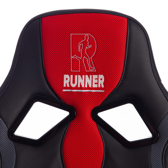 Кресло компьютерное «Ранер» (Runner) (Искусственная черная кожа + красная сетка)