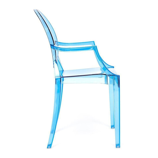 Стильное кресло MEDALION синего цвета из коллекции Modern выполнено в стиле прозрачного стула Louis Ghost, созданного гениальным французским дизайнером Филиппом Старком. Изящная форма, овальная спинка и изогнутые ножки в сочетании с прозрачным пластиком подчеркивают уникальность и универсальность кресла. Классические очертания и визуальная воздушность позволяют ему вписаться в любой стиль интерьера: от классического до стиля бохо. Благодаря прозрачной поверхности, отражающей свет, и визуальной легкости кресло станет идеальным решением для небольших помещений. Удобная спинка и высокие подлокотники обеспечат комфорт для продолжительного отдыха. Кресло изготовлено из прочного пластика синего цвета, оно устойчиво к механическим повреждениям и нагрузкам, выдерживает большой вес. Эта удобная, легкая модель способна стать отличным украшением террасы загородного дома, интерьера городской квартиры или веранды кафе. Кресло подойдёт для гостиной, для кухни, для ресторана или для веранды. Кресло поставляется в собранном виде.