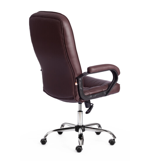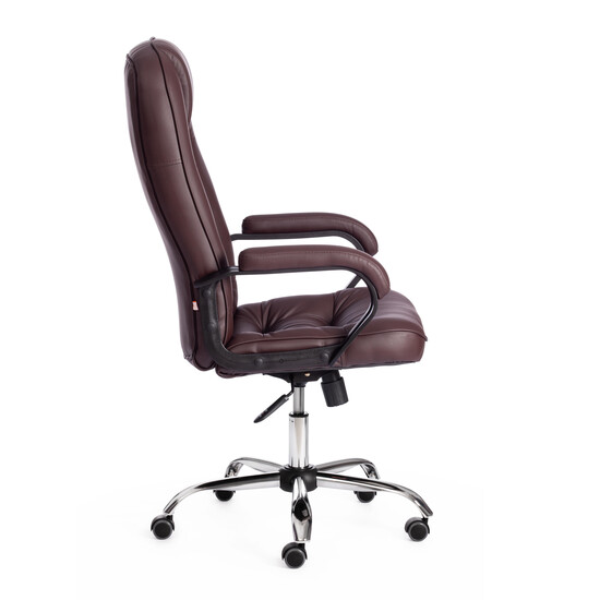 Компьютерное кресло СН9944 (22) хром из коллекции OFFICE из высокопрочной износостойкой экокожи - идеальное решение для кабинета руководителя или переговорной комнаты. Уникальная модель произведет впечатление на партнеров и клиентов своим презентабельным внешним видом, подчеркнет состоятельность вашей компании. Крепкий каркас выполнен из фанеры толщиной более 10 мм – экологически чистого, надежного и долговечного материала. Сиденье с мягким наполнителем из пенополиуретана (до 35 кг/м2) стандартной плотности обладает высокими эксплуатационными качествами, не меняет форму со временем. Офисное кресло регулируется по высоте и наклону с фиксацией в одном положении. Жесткость качания настраивается при помощи специального барабана. Металлическая хромированная крестовина устойчива, надежна, выглядит фундаментально и респектабельно. Высококачественные полиуретановые ролики с прорезиненными вставками позволяют бесшумно перемещать кресло с места на место, не оставляют следов на напольном покрытии, подходят для использования на паркете и ламинате. Ролики и крестовина в креслах бренда TETCHAIR соответствуют стандарту BIFMA. Во всех креслах бренда TETCHAIR используются газлифты 3 класса, он способен выдерживать вес до 120 кг. Компьютерное кресло обито высокопрочной износостойкой экокожей. Такой материал имеет долгий срок службы, прост в уходе, воздухопроницаем. Экокожа, используемая при изготовлении кресла, выдерживает до 50 000 циклов на истирание по Мартиндейлу. Ткани с прочностью более 35 000 циклов являются самыми долговечными. Мебель, в которой используются такие ткани можно использовать не только дома но и в ресторанах, салонах красоты, приемных. Фиксированные пластиковые подлокотники с мягкими накладками, анатомическая спинка, вместительное сиденье обеспечат правильную посадку и снимут напряжение с позвоночника. Офисное кресло представлено в коричневом, черном и бежевом цветах. Модель поставляется в разобранном виде. Необходима простая сборка по прилагаемой инструкции. Максимально нагрузка 120 кг.