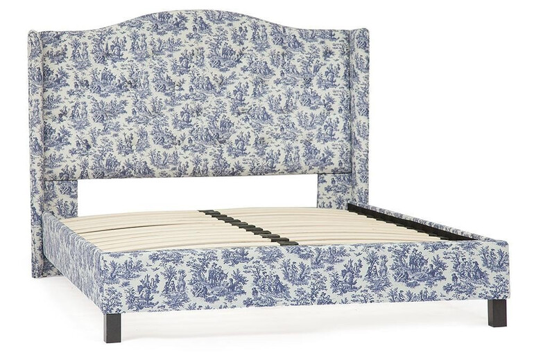 Кровать «Жуи» с мягким изголовьем в знаменитой сине-белой расцветке jouy выполнена в традиционной эстетике стиля прованс. Плавные формы высокого изголовья, эффектная обивка в технике капитоне, прочный каркас из массива березы, тонированной в темный цвет ― эта элегантная и комфортная модель станет любимым местом отдыха в вашем доме. Обивка мягкого изголовья из смесовой ткани обладает повышенной износостойкостью, отлично пропускает воздух, отталкивает пыль и способна на долгие годы сохранить свой первоначальный цвет не протираясь и не выцветая. Размер спального места ― 140х200 см, реечное дно из массива березы входит в комплект. Кровать требует сборки.