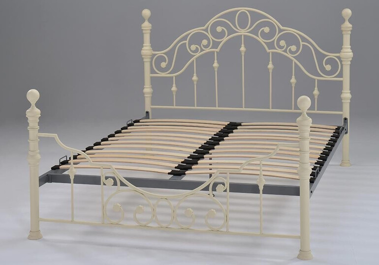 Двуспальная кровать «Виктория» (VICTORIA) из Английской коллекции выполнена в классическом викторианском стиле. Изящные черты, кованые элементы и декоративные узоры в сочетании с литыми наконечниками помогут создать неповторимый образ вашей спальни. Надежный устойчивый каркас кровати выполнен из прочного металла, который не потеряет своего первоначального вида на протяжении долгих лет. Ламели изготовлены из крепкой древесины ─ массива бука. Она обладает прекрасными эксплуатационными свойствами, гибкостью и пластичностью. Благодаря своей изогнутой форме ламели обеспечивают удобство и комфорт во время длительного отдыха. Кровать «Виктория» (VICTORIA) в цвете античный белый (Antique White) отлично впишется в интерьер с любым дизайном, добавит ощущение роскоши и великолепия загородному дому или городской квартире. Эксклюзивная модель впечатлит даже самых требовательных хозяев своим уникальным внешним видом, эксплуатационными качествами и длительным сроком службы. Кровать поставляется в разобранном виде, необходима несложная сборка по прилагаемой инструкции.