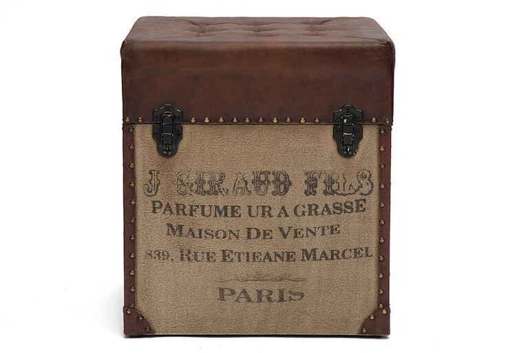 Удобство, простота и креативность прекрасно сочетаются в дизайне пуфа-сундука Secret De Maison CLICHY из коллекции LOFT ART. Компактный пуф можно разместить в любой комнате, использовать в качестве придиванного столика, сиденья в прихожей или гостиной, как подставку для ног около уютного кресла. Благодаря откидывающейся крышке, пуф-сундук является довольно вместительным и функциональным предметом обстановки, не требующим большого количества свободного места. Его можно использовать не только, как место для отдыха, но и как удобный ящик для хранения небольших предметов. Винтажная фурнитура, сочетание натуральной кожи и хлопковой ткани с принтом смотрится изысканно, оригинально и придает особенную красоту изделию. Прочный корпус из массива мангового дерева долговечен, надежен и не требует специального ухода. Практичная обивка из кожи и ткани не мнётся, не меняет форму, прослужит вам долгие годы. Модель поставляется в собранном виде.