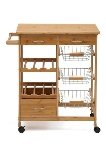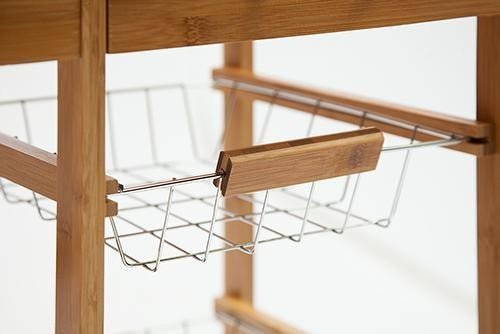 Передвижной кухонный разделочный столик с ящиками и корзинками. Легкий, прочный, изготовлен из натурального бамбука, с красивой фактурой, полностью экологичен и не подвержен влаге.