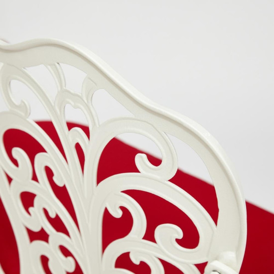 Изысканная садовая скамья с подушкой Secret De Maison Symphonie из коллекции JARDIN будет прекрасно смотреться в загородном доме, на дачной веранде, отлично подойдёт для отдыха на приусадебном участке. Высокое качество и красота неповторимых ажурных узоров, выполненных вручную, добавит благородства в ваш ландшафтный дизайн, подчеркнет вкус и статус своего владельца. Эргономичная спинка, удобные подлокотники и мягкая подушка на сиденье помогут создать уютное и комфортное место для отдыха на свежем воздухе. Эта функциональная, прочная и красивая скамья займет важное место в оформлении вашего сада. Тканевая обивка из полиэстера практична, проста в уходе, прослужит вам долгие годы, сохраняя свой первоначальный вид. Прочный каркас, выполненный из литого алюминия и покрашенный в белый цвет, надежен, устойчив к любым погодным условиям, способен выдерживать большие нагрузки. Изделие прекрасно сочетается с мебелью из коллекции JARDIN, поставляется в разобранном виде.