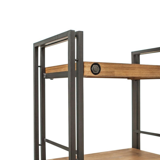 Лаконичный стеллаж Secret De Maison из массива акации и металла выполнен в индустриальном стиле. Конструкция открытого типа отличается вместительностью, эстетикой и функциональностью. Четкие формы, деревянные полки и незатейливая отделка прекрасно сочетаются с черным металлическим каркасом и будут смотреться стильно и оригинально в вашем интерьере. Крупные гайки с шайбами, врезанные в верхнюю кромку, привносят в дизайн живости и служат ярким акцентом изделия. Классическое продольное браширование, поперечная обработка для создания следов «пилы» и финишное покрытие натуральным маслом подчеркивают природную красоту древесины. Обработанное по данной технологии дерево обладает повышенной прочностью, долговечностью и не требует специального ухода. Стеллаж прекрасно дополняет и отлично сочетается с мебелью из коллекции CITY, поставляется в разобранном виде.