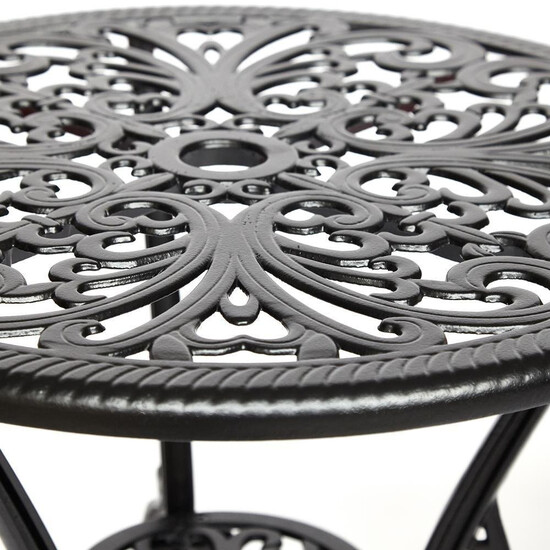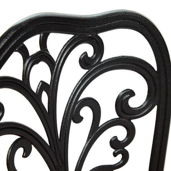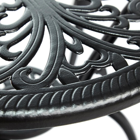 Элегантный комплект кованой мебели Secret De Maison Romance из коллекции JARDIN, состоящий из стола и двух стульев, − идеальное решение для отдыха на загородном участке. Плавные витиеватые изгибы ажурных орнаментов столешницы и спинок стульев, выполненных вручную, добавят ноты изысканности и индивидуальности в ваш интерьер. Устойчивый стол на трех ножках, дополненный миниатюрной нижней полочкой, и два удобных стула выглядят легкими и практически невесомыми. Эта прочная и практичная мебель, способна выдержать большие нагрузки, устойчива к любым погодным условиям и долгие годы сохранит свой презентабельный вид. Комплект прекрасно сочетается с мебелью из коллекции JARDIN, поставляется в разобранном виде. Для вашего удобства на стулья можно дополнительно приобрести декоративные подушки из нашей коллекции текстиля.