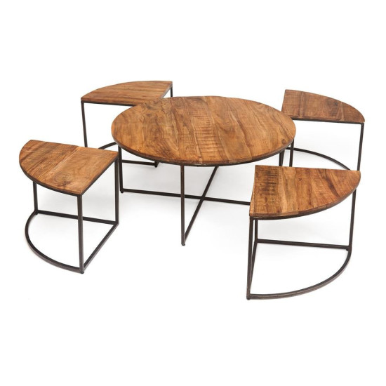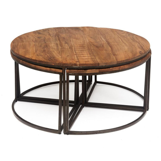 Стильный кофейный столик Secret De Maison EUGENDORF из коллекции LOFT WOOD украсит собой практически любую домашнюю обстановку. Оригинальная конструкция из пяти частей и сочетание металлического каркаса с деревянной столешницей выгодно выделяют его в интерьере. Небольшие потертости и царапины с признаками ржавчины и старины на поверхности металлического каркаса позволяют создать неповторимый облик изделия. Столик изготовлен из массива палисандра, покрытие натуральным маслом идеально подчеркивает природную красоту древесины. Обработанное по данной технологии дерево обладает повышенной прочностью, долговечностью и не требует специального ухода. Модель прекрасно сочетается с мебелью из коллекции LOFT WOOD, поставляется в собранном виде.