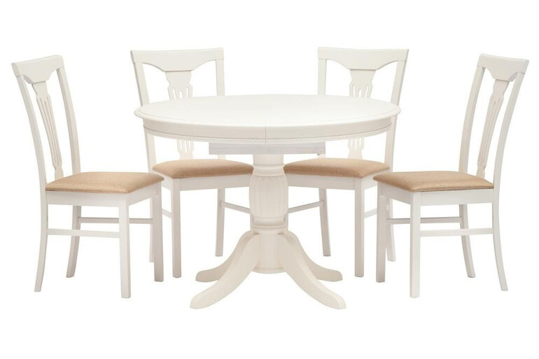 Привлекательный дизайн и визуальная легкость обеденного стола «Леонардо» (Leonardo) из Миланской коллекции добавит вашему интерьеру ощущение комфорта и уюта. Оригинальная модель прекрасно подойдет для кухни, столовой или гостиной. Обеденный стол выполнен из ценной древесины - массива гевеи, что придает модели прочность, надежность и основательность. Раскладная столешница из МДФ круглой или овальной формы с изысканной резной окантовкой проста в уходе, устойчива к воздействию тепла и влаги, позволяет с удобством разместить от четырех до шести человек. Изящная, но в то же время устойчивая резная ножка выглядит оригинально. Обеденный стол белого цвета (Pure white) прекрасно впишется в любую обстановку загородного дома или городской квартиры, создаст атмосферу уюта . Элегантная модель «Леонардо» (Leonardo) с раскладным механизмом износостойка и надежна, будет радовать вас своей функциональностью и первозданным внешним видом долгие годы. Стол прост в сборке, инструкция по сборке прилагается.