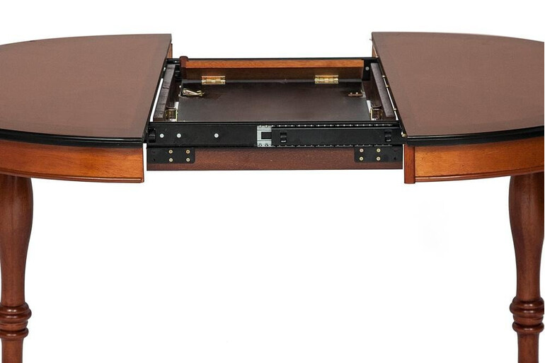 Классический деревянный раскладной обеденный стол с резными ножками "Лайфстайл". Вставка убирается под столешницу посредством удобного механизма. Столешница отделана шпоном, основание изготовлено из натуральной гевеи Каучукового дерева. Резные ножки полностью соответствуют стульям «Виктория»
