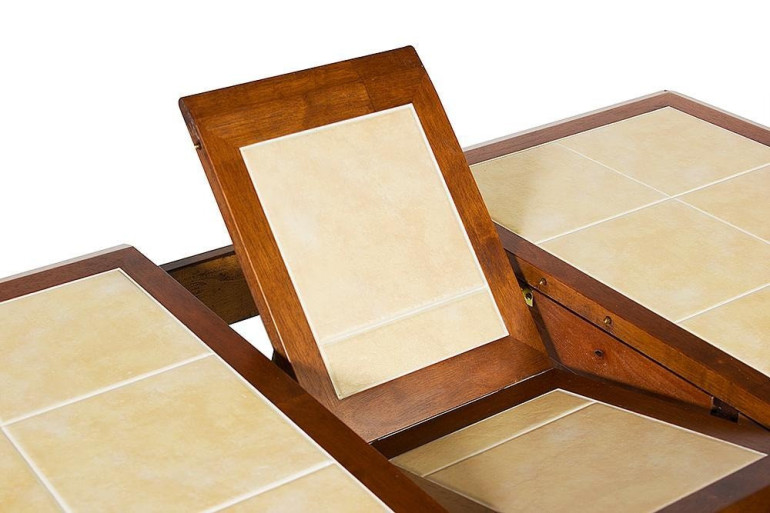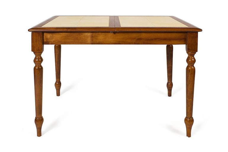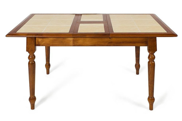 Обеденнный раскладной стол из гевеи прослужит долго на любой кухне. Ведь гевея, или каучуковое дерево, устойчиво к влажности и высоким температурам. Не даром из гевеи производят даже кухонную посуду. Кроме прочности самого деревянного основания стол оснащен расписанной керамической столешницей, на которой можно разместить горячую посуду прямо с плиты или из духовки, не использую специальной подставки. А раскладной механизм позволяет быстро трансформировать модель из семейного стола в просторный стол для большой компании.