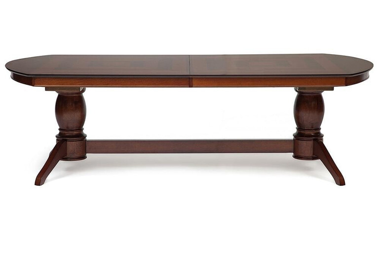 Обеденный классический итальянский стол со складным механизмом. Основание стола изготовлено сделано из натуральной гевеи. Это дерево славится своей прочностью и долговечностью. Столешница с тремя вставками, убирающимися под столешницу посредством удобного механизма. Столешница отделана шпоном с интересным геометрическим рисунком. Ножки модели декорированы металлическими наконечниками с медным напылением под старину и цветочным узором - символом центра мира, пяти чувств и элементов. Стол прослужит Вам долгие годы, не требуя особого ухода.