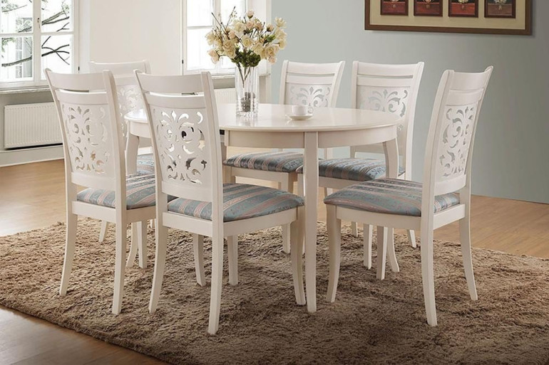 Классический раскладной обеденный стол "Милано". 4 элегантно изогнутые ножки в сочетании с цветом "слоновая кость"придают лаконичному столу изысканный образ. Вставка убирается под столешницу посредством удобного механизма. Данная модель отличается прочностью.