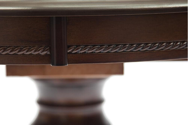Классический раскладной обеденный стол овальной формы для столовой или гостиной. Вставка убирается под столешницу посредством удобного механизма. Столешница с натуральным шпоном, основание сделано из натуральной гевеи. Данная модель помимо эстетических и практических качеств, отличается еще и прочностью. Стол прослужит Вам долгие годы, не требуя особого ухода. Модель выполнена в коричневом в рыжину цвете.