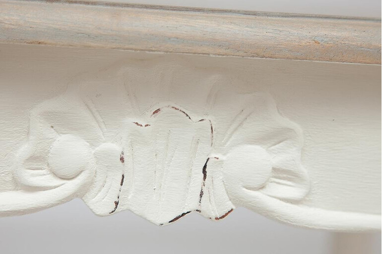 Стильный обеденный стол Secret De Maison AUGUSTINE из французской коллекции VERSAILLES – идеальное решение даже для небольшого помещения. Круглая форма стола, за которым могут комфортно разместиться от четырех до шести человек, располагает к приятному и непринужденному общению. Деревянные ножки и подстолье, декорированные резными деталями и изящными узорами ручной работы, выгодно выделяют его среди привычной мебели. Небольшие потертости, царапины и облупившаяся краска придают изысканность и особенный лоск изделию. Надежная столешница из массива красного дерева, покрытая полупрозрачной краской и натуральным маслом, не требует сложного ухода. Эта элегантная и комфортная модель станет любимым предметом интерьера в вашем доме. Простая в сборке и прочная конструкция из столешницы и ножек прослужит вам долгие годы. Стол идеально сочетается с мебелью из коллекции VERSAILLES, поставляется в разобранном виде.