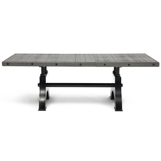 Оригинальный обеденный стол Secret De Maison CHEVALET из коллекции ROOKERY, выполненный в индустриальном стиле, способен стать не просто частью комнаты, но и задать тон вашему интерьеру. Столешница из массива гевеи, тонированная серой краской, и оригинальное подстолье из дерева, имитирующее тяжелый металлический станок, – идеальное сочетание для современного стильного интерьера. Декоративные гайки, врезанные в кромку столешницы, привносят в дизайн живости и служат ярким акцентом изделия. Раздвижная конструкция позволяет грамотно организовать пространство и комфортно разместить от шести до десяти человек. Массив гевеи обладает повышенной прочностью, долговечностью, устойчив к воздействию влаги, пыли и загрязнениям, способен многие годы не утрачивать своей первоначальной привлекательности. Стол идеально сочетается с мебелью из коллекции ROOKERY, поставляется в разобранном виде.