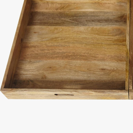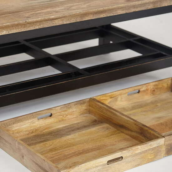 Журнальный стол Secret de Maison из французской коллекции BLACK LABEL - это удачное сочетание простоты и оригинальности. Два съемных ящика-подноса можно использовать для сервировки стола. Удобная конструкция без пазов и отверстий позволяет легко установить подносы обратно. Светлая столешница из массива манго, обработанная натуральным маслом, проста, неприхотлива в уходе и по-современному практична - благодаря высоким бортикам с нее ничего не упадет. Деревянные ножки делают модель крепкой и основательной. Контрастное сочетание светлой столешницы и черного основания из массива акации, покрашенного в черный цвет, будет смотреться стильно и оригинально в вашем интерьере. Стол прекрасно сочетается с мебелью из коллекции BLACK LABEL. Поставляется в собранном виде.