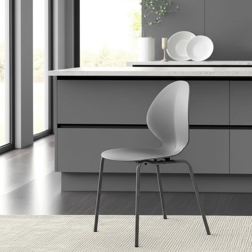 Оригинальная форма стула EBAY из коллекции Modern позволит привлечь внимание и сделать акцент в вашем интерьере. Он будет хорошо смотреться в гостиной, кухне или столовой. Тонкие металлические ножки и пластиковое сиденье серого цвета придают модели особую привлекательность, оригинальность и визуальную легкость. Удобная форма сиденья, которая как будто бы повторяет формы человеческого тела, позволит комфортно расположиться на длительное время. Небольшой вес и компактность дают возможность расположить стул в удобном для вас месте, переместить его в другую комнату или угол при необходимости. Пластик и металл – прочные и долговечные материалы, не требующие специального ухода, способные выдерживать большую нагрузку. Стул можно использовать не только внутри помещения, но и на открытой веранде, балконе, террасе. Он будет радовать вас своим первоначальным видом долгие годы. Стул подойдёт для гостиной, для кухни, для спальни, для дачи, для ресторана или для кафе. Стул очень прост в сборке, инструкция по сборке прилагается.