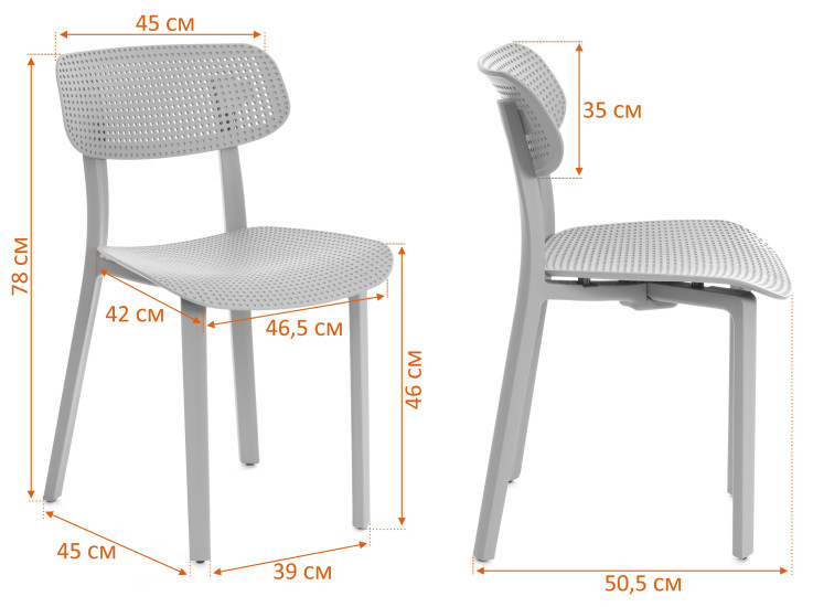 Перфорация: Уникальные отверстия в спинке и сидении не только делают конструкцию легче, но и позволяют эффективно использовать стул на улице, так как он не боится воды.