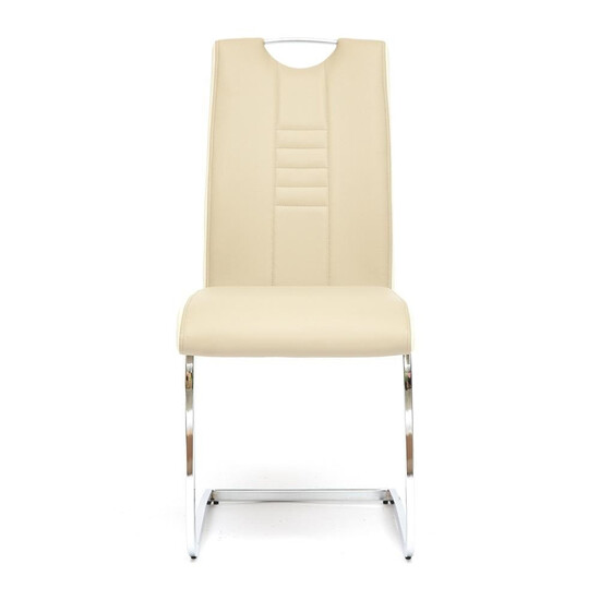 Стильный стул STERN из коллекции Modern выполнен в оригинальном дизайне, напоминающем стиль модерн середины двадцатого века. Он способен придать индивидуальность интерьеру, выделить его из сотен обыденных и привычных. Двухцветная обивка цвета слоновой кости в сочетании с хромированным металлическим каркасом идеально соответствует концепции современного стильного пространства. Удобная форма спинки и сиденья стула обеспечивает комфорт на протяжении длительного времени. Обивка из экокожи цвета шампань и слоновой кости не мнётся, не меняет форму, проста в уходе. Это практичный материал, который сочетает в себе мягкость и эластичность натуральной кожи с прочностью текстильных волокон. Металлический каркас отличается прочностью, устойчивостью к износу и долговечностью. Стул не требует специального ухода и будет долгое время радовать вас своим первоначальным видом. Стул хорошо подойдет для гостиной, для кухни, для кабинета, для офиса, для ресторана или для кафе. Стул очень прост в сборке, инструкция по сборке прилагается.
