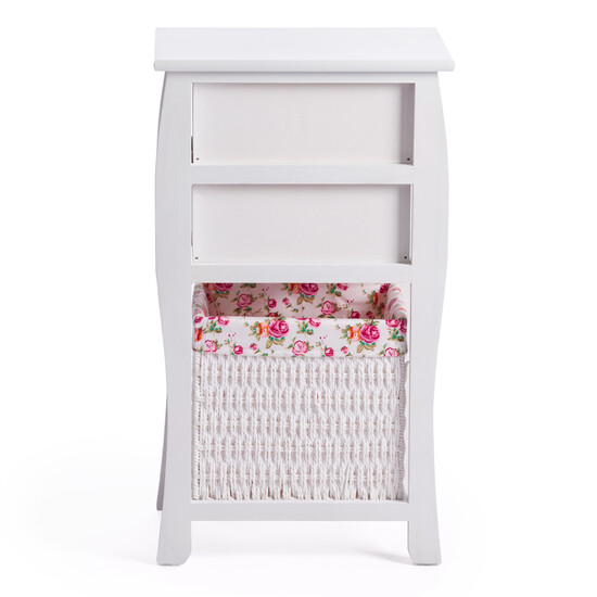 Великолепная тумба Secret de Maison ARC 2 из коллекции SAINT-TROPEZ, созданной по проектам французских дизайнеров, выполнена из массива павловнии. Изящная форма и идеальные пропорции – этот предмет интерьера станет украшением вашего дома, привнесет в него неповторимый шарм и очарование. Прочный каркас из массива павловнии, покрашенный в цвет слоновой кости, плетеная корзина из бумажного жгута и съемный тканевый чехол с нежным цветочным принтом подчеркивают красоту и благородство изделия. Два выдвижных ящика и корзина ручной работы удобны для хранения большого количества предметов. Тумба отлично впишется в интерьер спальни или гостиной. Натуральная древесина павловнии, проста в уходе и будет долгие годы радовать вас своим первоначальным видом. Тумба прекрасно сочетается с мебелью из коллекции SAINT-TROPEZ, поставляется в собранном виде.