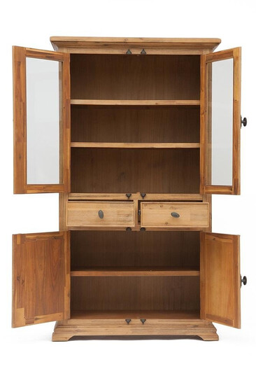 Лаконичный дизайн, симметричные формы и идеальные пропорции витрины Secret De Maison из французской коллекции AVIGNON позволят ей вписаться практически в любой интерьер. Темная патина, винтажная фурнитура с дизайнерским литьем и фасады, напоминающие ставни-жалюзи средиземноморских вилл, наделяют модель особым шармом, делают ее более респектабельной на вид, при этом визуально легкой и лаконичной. Сочетание полок с выдвижными ящиками – прекрасная система для хранения коллекционных предметов, красивой посуды и прочих мелочей. Застекленные дверцы не только удачно подчеркнут уникальность вашей домашней коллекции, но и надежно защитят ценные вещи от пыли и лишних прикосновений. Витрина изготовлена из массива тропической акации, браширование и покрытие из натурального твердого воска идеально подчеркивают природную красоту древесины. Обработанное по данной технологии дерево обладает повышенной прочностью, долговечностью и не требует специального ухода. Модель идеально сочетается с мебелью из коллекции AVIGNON, поставляется в собранном виде.